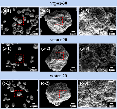 100次熔化-凝固循环后的扫描电镜图:(a) vapor-30, (b) vapor-90 and (c) water-20