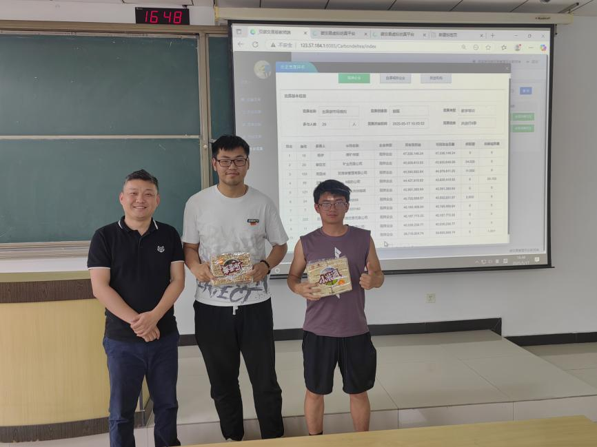 在相关理论知识传授后,蔡磊总监基于其所在公司开发的虚拟碳交易平台,指导学生进行了一场生动且有趣的碳交易竞赛,在竞赛中,同学们各自成立自己的控排企业,通过基于虚拟平台的碳排放权的售卖及收购,在以获得最高经济收益为目标的竞赛中,最终实现碳排放的履约。
