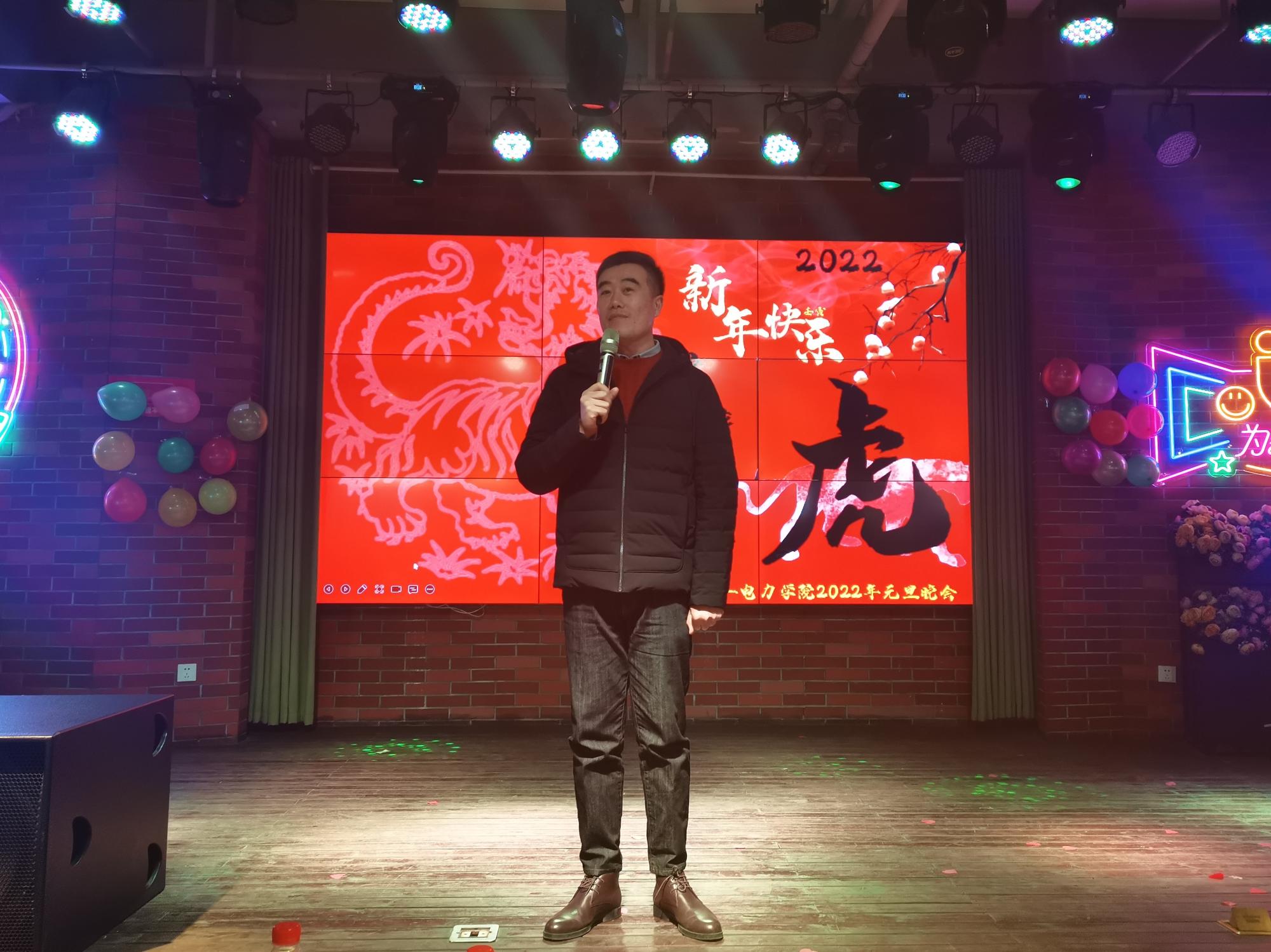 于基伯副书记上台致辞,对2021年电力学院学生组织的辛苦与取得的优异成绩表示感谢与祝贺,对全体师生的付出给予肯定,表示对电力学院在新的一年的发展充满信心,表达了对同学们的殷切希望,并对全体师生致以新年的祝福。