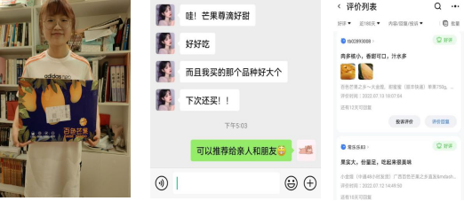 7月5日,实践团各成员通过直接联系帮扶地区(广西百色市)的果农们通过新媒体渠道进行售卖芒果。在售卖的过程中,通过朋友圈文案、制作芒果海报、线上或线下的沟通等方式向群众介绍所售卖芒果的特点,有效提高了芒果销量。
