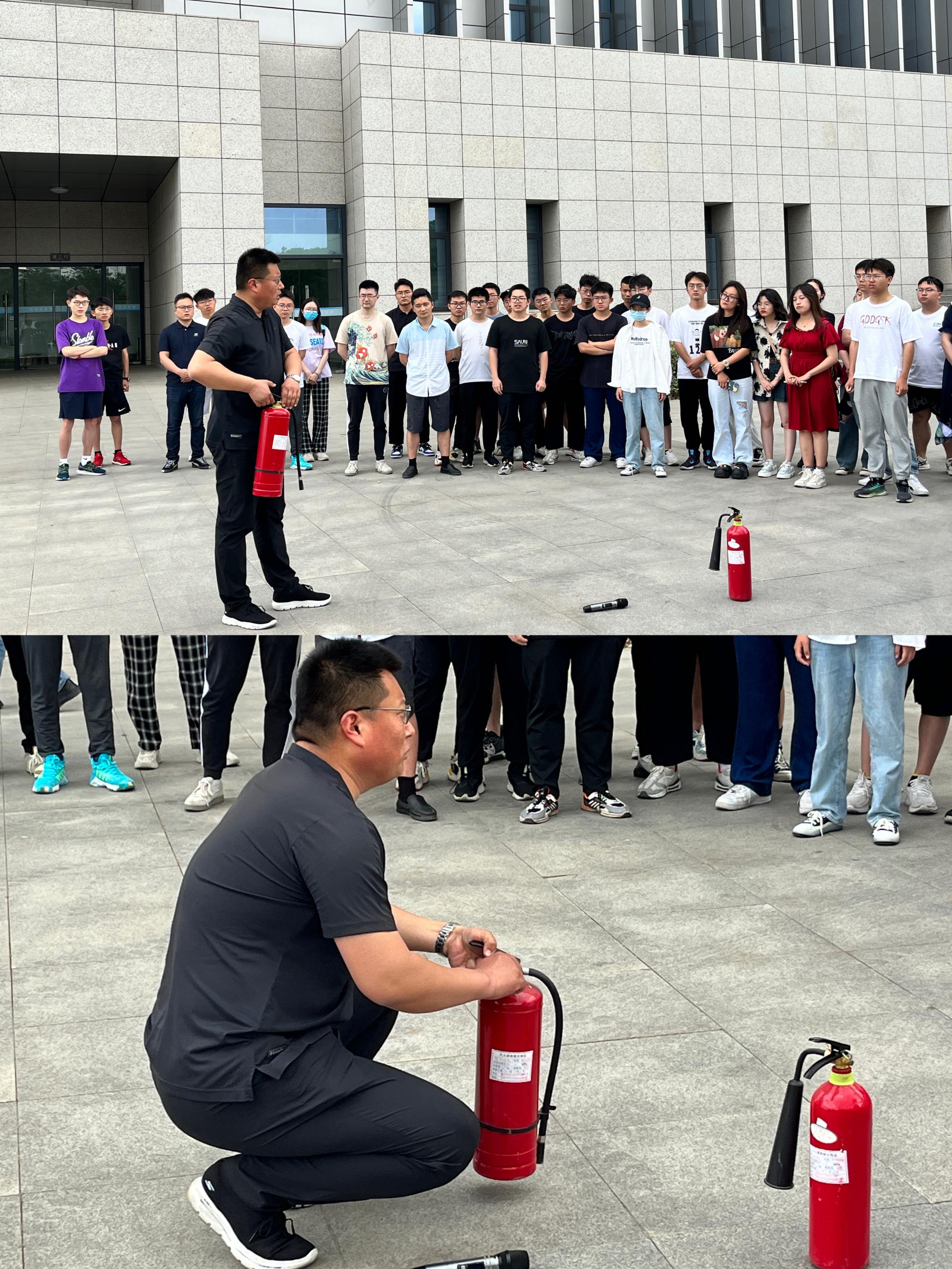 活动开始前,刘尊旭副院长强调了开展消防演练的重要意义。他指出,各位老师同学应增强安全防范意识,牢固掌握火情处置方法,筑牢安全防线。随后,王锐老师就火灾的种类、火情的发展规律、疏散逃生的要领和灭火器的工作原理进行讲解,并以“提”“拔”“握”“压”四个步骤演示了灭火器使用步骤。针对实验室中的火灾,王锐老师提醒大家要量力而为,分析火势后进行处理。遇到大火时应在确保人身安全后及时报警处理。讲解完成后,现场师生在专业人员的指导下按照步骤分组使用灭火器进行了消防灭火“实战”演练。