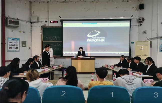 2023级兼职辅导员潘亚婷,院辩论队孔晨宇、李泉润、王旗、胡涵之、张楠五名同学担任,2023级全体学生到场观赛。