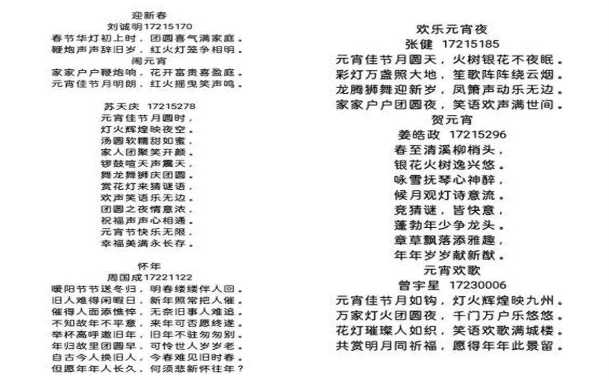本次诗词创作以线上形式开展,参赛同学需要以“新春”为主题,从缜密思考到文笔精炼,尽可能凸显了自己的真实文笔和文学底蕴,并在规定的时间内完成对参赛作品的提交。此次诗词创作大赛共收到120余篇作品,主办方本着客观、负责的态度,从诗词的表现手法、情感表达、诗歌意境、篇章运用等方面,最终评选出了12篇获奖作品,其中厕拍