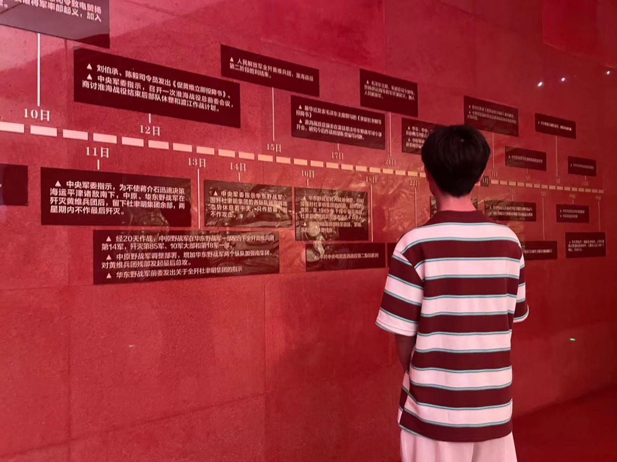 参观伊始,“自强之旅,青春选择”实践团成员们在庄严肃穆的纪念塔前举行简短而庄重的仪式,向淮海战役中英勇牺牲的烈士们表达了深深的敬意。随后,实践团进入淮海战役纪念馆,借助丰富的历史文物、详实的图文资料以及现代化的展示手段,全面了解淮海战役的全过程。实践团成员们感慨道:“先辈们坚韧不拔的斗志和无私奉献的精神深深令人感悟颇深,我们希望将这种精神融入到实际行动中,为新时代的中国发展做出自己的青春选择,为实现中华民族伟大复兴的中国梦贡献一份力量。”