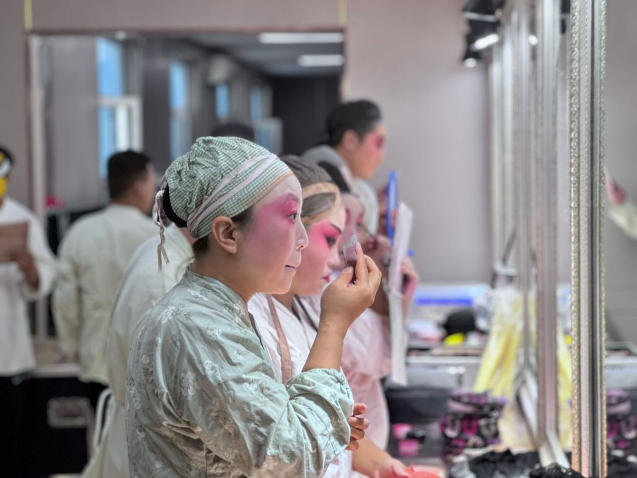 表演前集体化妆