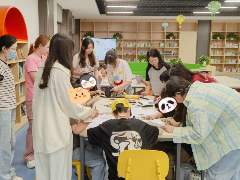 基于“融合”的实践原则,7月16日,实践团联合徐州市图书馆策划了“熠星照路”公益阅读游学活动,邀请孤独症孩子们与图书馆的读者小朋友们一起开启了一场关于书籍和阅读的奇妙旅程。游学共分为图书馆参观、一对一伴读、绘本绘画、借书还书流程教学四大环节,成员李雨露、曾子怡作为主讲人,帮助孩子们在阅读中融合社会、在绘画中理解自我。活动获得徐州市图书馆范主任、禾润康复中心吴主任等领导的高度评价。