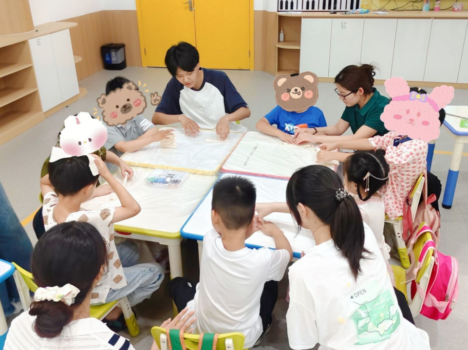 为帮助孤独症儿童融入社会,6月5日,郭耀辅、董尧顺等成员来到徐州禾润幼教康复中心进行调研。“理解与融合,是孤独症孩子们康复中极重要的两部分。”负责人吴老师对实践团成员介绍道。基于吴老师提出的两大原则,实践团成员于6月在康复中心老师帮助下进行多次培训,从病症特征、行为特点、相处方式等方面系统性学习孤独症相关知识,并于7月12日前往禾润,为孤独症儿童带来了以扎染、拓染、绘画为核心的一系列美育课程,对提升其社交能力、语言交流能力、生活自理能力起到积极作用。