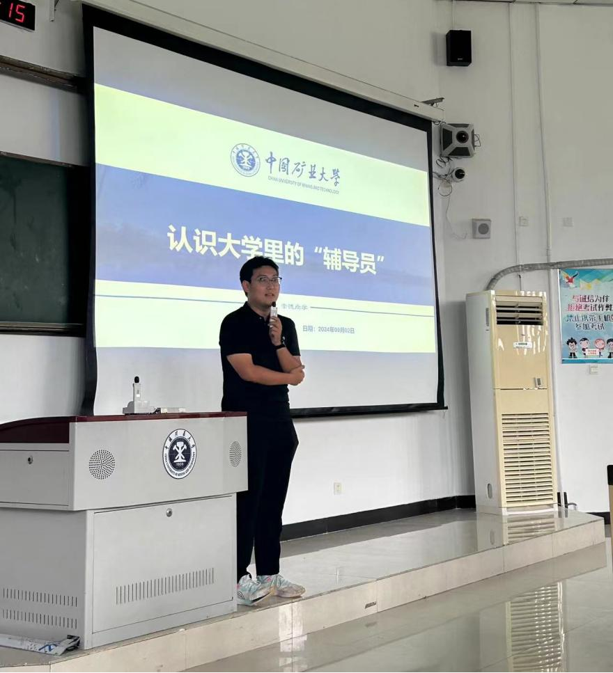 “认识大学里的‘辅导员’”活动由2024级专职辅导员王文礼主讲,2024级全体本科生参加,旨在帮助新同学们进一步了解辅导员这一身边角色,更好适应大学生活。王文礼老师向大家介绍了《中华人民共和国教育部令》中辅导员的定义和工作职责,并向大家进行详细的自我介绍。同时,他对校园生活常见问题做出提醒。