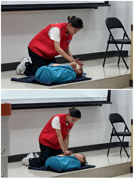 培训过程中,老师通过分享多起心脏骤停患者被成功抢救的真实案例,深刻阐述了掌握心肺复苏(CPR)等急救技能的重要性与紧迫性,为培训奠定了坚实的理论基础。在实践环节中,老师详细讲解了自动体外除颤器(AED)的使用方法和心肺复苏(CPR)的标准流程。志愿者们则结合假人模型,现场演示了从判断意识、呼叫求助,到胸外按压、开放气道、人工呼吸的完整步骤,并特别强调了按压深度、频率、位置等关键细节。