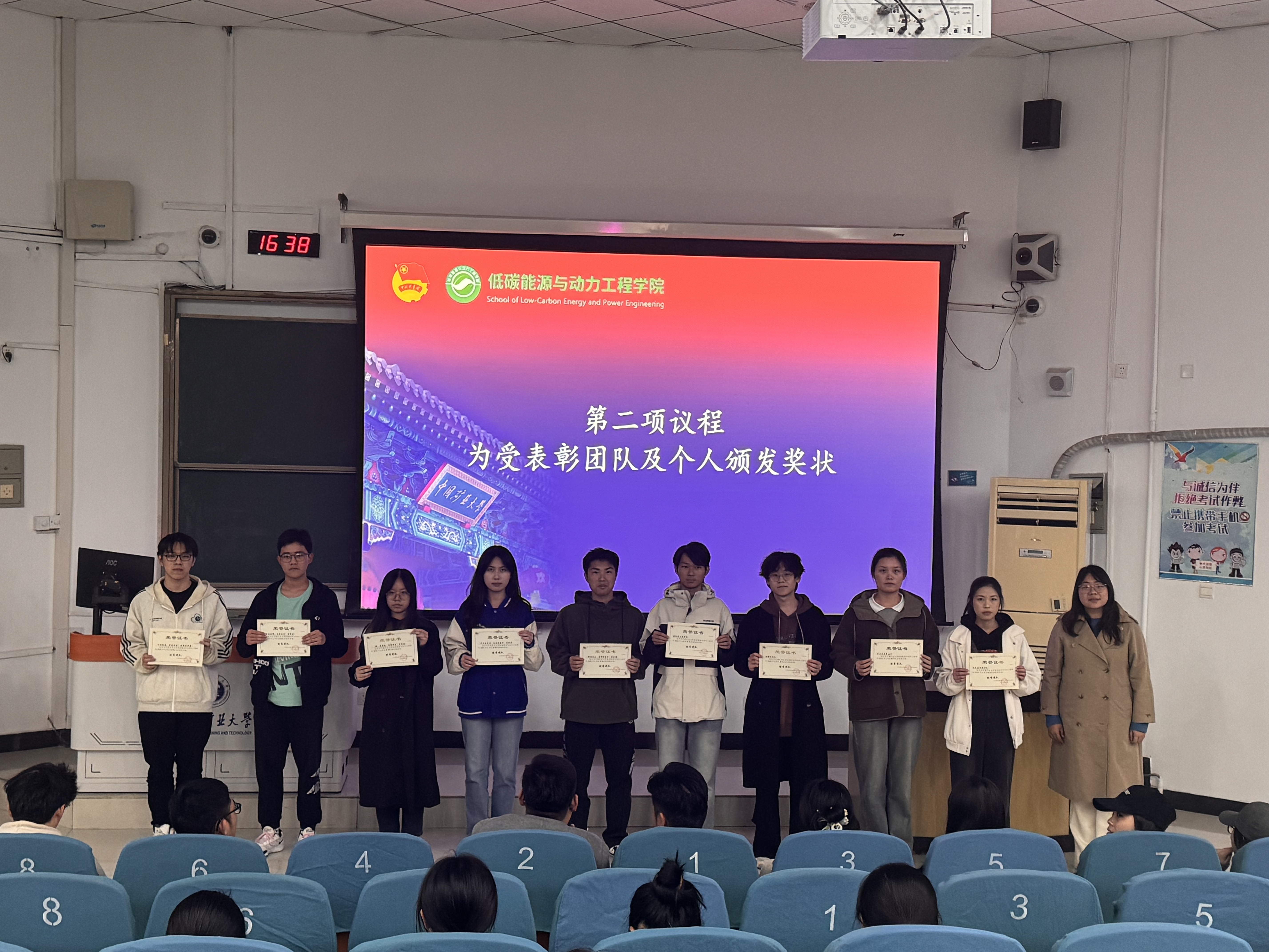 于博二C202教室召开2025年暑期社会实践表彰大会暨“碳索实践,青春启航”宣讲会。学工办主任、23级辅导员钟珊珊,团委书记、24级辅导员王文礼、院学生会指导教师、25级辅导员姜子岳、22级辅导员崔椿浩出席本次会议,受表彰团队代表、受表彰个人及2025级本科生共同参会。