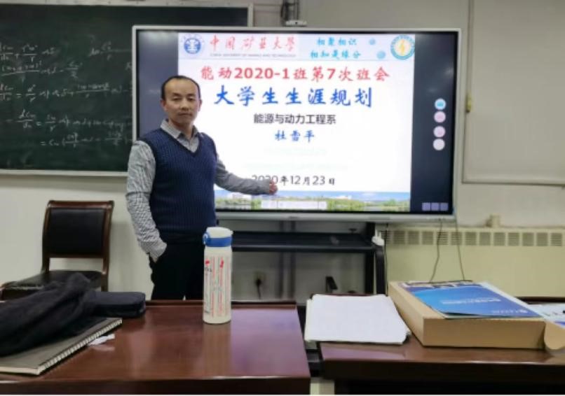 在处理学生事务之余,杜老师也有授课和科研的任务。大学老师的课看着也许不多,但是备课也会花去大量的时间和精力。白天事务繁多,他通常在晚上备课,杜老师说:“我心中有一个模范就是老一辈的教师,尤其是我的师爷爷陶文铨院士讲了一辈子的传热学,现在80多岁的高龄不但还在给学生上课,而且每次讲课之前都还在认真备课,看着自己的研究生导师以及师爷爷努力的样子,自己没有不努力的理由”。在指导学生科研训练方面,杜老师也全身心投入,班级大创队员刘诚明同学说:“杜老师对同学们的科研项目非常支持,经常自掏腰包帮助学生做大创等科研训练项目,遇到不懂地方,老师也会耐心指引我们去解决。”杜老师将自己的工作做到尽善尽美,结合自己教学遇到的问题,及时向班级提出反馈意见,不断助力班级的发展,努力实现教学、科研与班主任工作“三开花”。