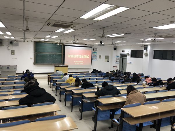 于11月28日晚在博1教学楼A402、A403、A404组织开展2018年下半年党的基本理论测试。此次测试共有106位本科生、研究生发展对象参加,学院各年级辅导员负责监考。