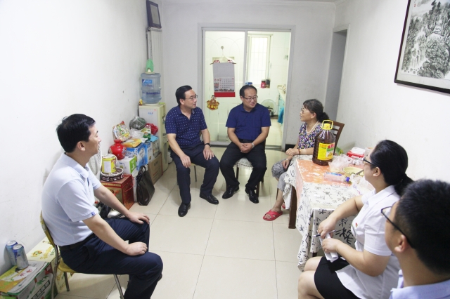 交流结束后,在居委会主任殷昌雯和居委会党支部副书记吴小丽的陪同下,走访组一行深入到康居社区居民家中进行深入细致的走访慰问,并为他们送去了慰问品。