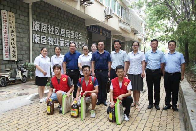 根据学校“百千万”集中走访帮扶活动的整体工作安排,8月21日上午,学院党委书记陈清华,党委副书记兼行政副院长许宏志以及校“百千万”集中走访活动第二组组成单位的负责领导矿业学院党委书记陈新忠、设计学院党委书记施永红,共同深入到徐州市康居社区开展集中走访慰问帮扶活动。学院党政办公室主任赵海琳、矿业学院团委书记郭泓江和部分学生志愿者代表参加了走访活动。