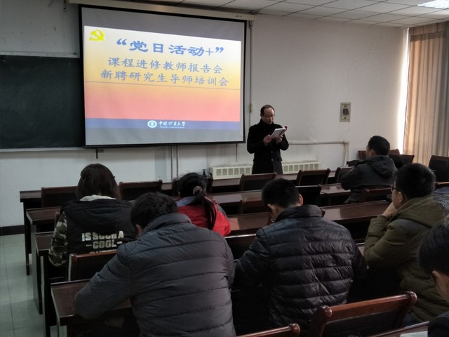 会议期间,与会教师就十九大党章修正、新聘研究生导师培训、课程进修等内容进行了广泛交流和深入探讨,表示将在党的十九大精神的指引下,进一步做好教学和科研工作。