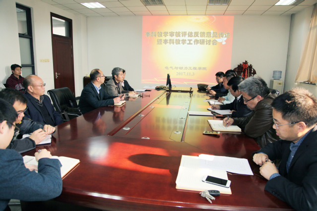 11月3日下午,学院在学院会议室召开教学研讨会,传达学校本科教学工作审核评估反馈意见,同时对下一阶段教学工作进行研讨。学院党政领导、教授委员会主任、电气工程系以及能源与动力工程系正副主任、专业建设负责人、学院教学管理科主任、学工办主任以及部分教授代表参加了会议。会议由学院党委副书记兼行政副院长许宏志主持。