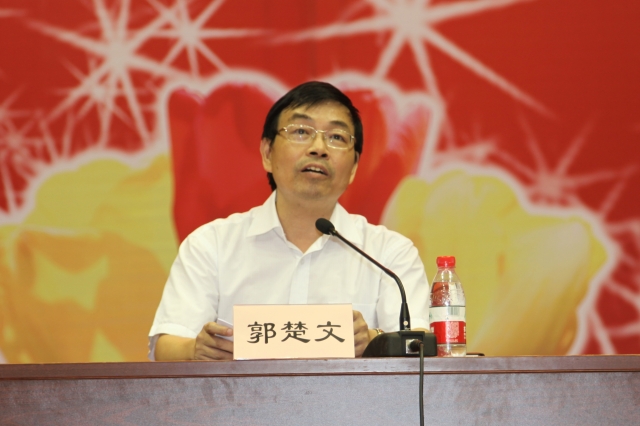 郭楚文院长在典礼上发表了热情洋溢的讲话。他首先向全体新生介绍了学院的发展历史和现状,增进了新生对院情院史的了解和理解。在此基础上,他从反映钱学森等两弹一星元勋们艰苦创业历程的经典影片《横空出世》切入,引出著名的“钱学森之问”,由此从大学之于学生的责任和学生之于自我、之于社会的责任两个不同的视角,通过大量真实的经典案例和名言警句,为全体新生深入浅出地解析了大学生涯的丰富内涵。他指出,大学要使学生养成独立的人格,要教会学生耐得住寂寞,扛得住重压,守得住信仰,要为学生的发展提供登高的梯、顺风的技,帮助他们跨上千里马,踏上万里船。同时,他告诫全体新生,作为学生,大学生涯的首要责任就是学习,要继续努力的学习,要为自己的人生确定一个崇高的理想,并且把自己的大学生涯作为理想实现新的起点,要在大学生涯中建立起创新创造的思维方式,积聚起创新创造的勇气,保持住创新创造的激情。