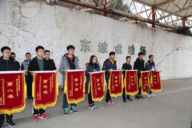 田径场上,参赛运动员你追我赶;看台上,各班积极组织啦啦队为本班运动员呐喊助威;场内外工作人员坚守岗位、认真维持比赛秩序。服务台前,志愿者积极为运动员提供后勤保障。经过一天紧张激烈、异彩纷呈的竞赛,电气17-5班、能动17-5班、电气17-4班、电气17-2班、电气17-8班、电气17-9班、电气17-6班和电气17-7班,分别获得团体总分前八名,电气17-2班、电气17-4班、能动17-5班、能动16-2班、能动16-7班获得本届运动会道德风尚奖。教学副院长徐瑞东在闭幕式上致辞并为获奖的团体代表颁奖。