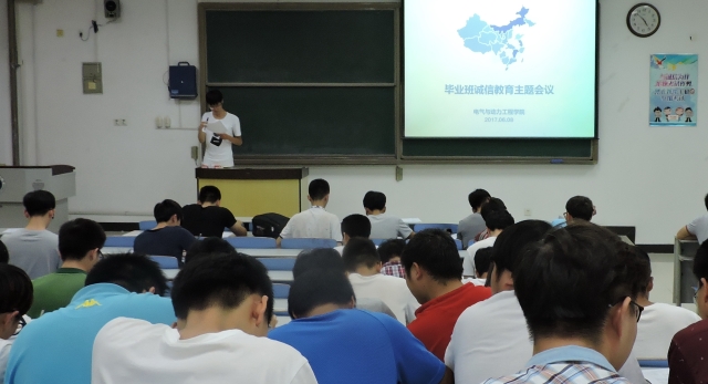 为了进一步加强2017届本科毕业生的诚信教育,促进国家生源地助学贷款工作的有序顺利进行,6月8日下午电气与动力工程学院在博一楼B102举办2017届本科毕业生诚信教育活动。本科2013级辅导员李鸣轩、何超参加此次诚信教育会。