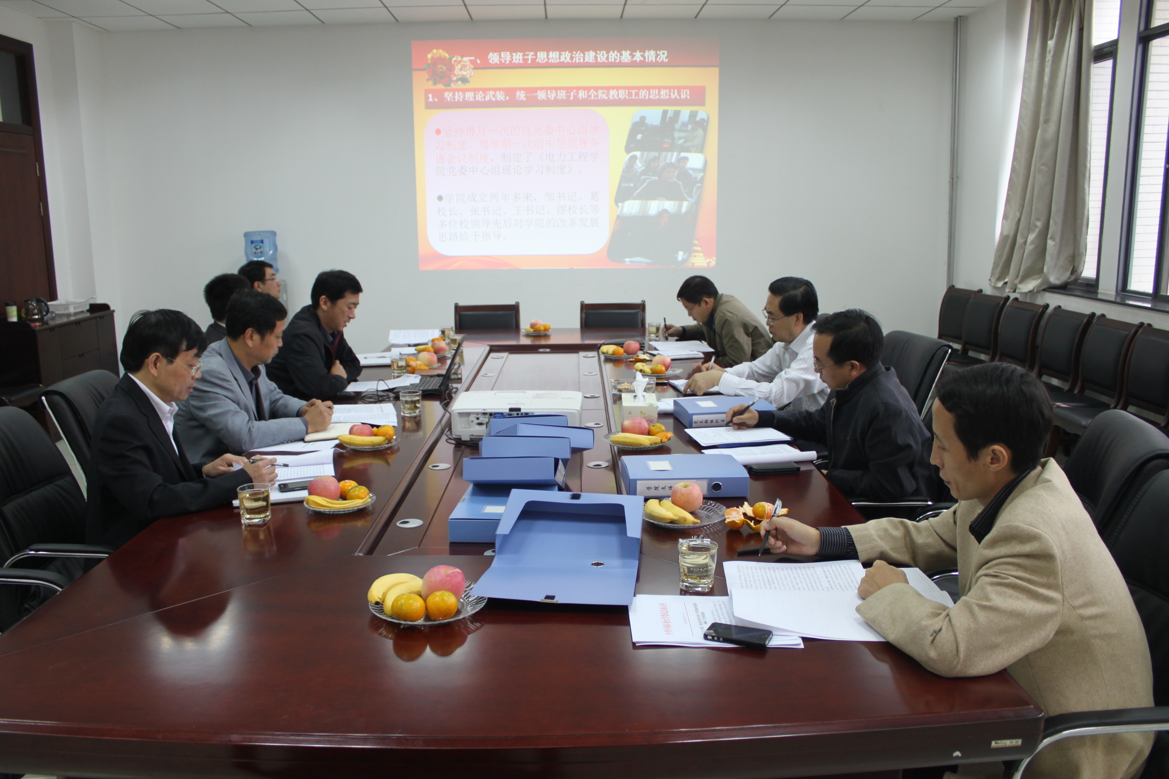 首先,调研小组与电力学院部分在职教师和学生工作干部进行了个人谈话,了解当前的学院建设情况并听取他们对学院事业发展的意见和建议。在汇报会上,电力学院党委书记陈清华从学院的组织制度建设、学院领导班子思想建设情况、“三重一大”决策制度的建设与执行情况、落实任期目标责任的主要思路和措施、高端人才的培养引进情况等方面进行了工作汇报。电力学院一直秉承着务实、创新的工作作风,开拓进取,稳健发展。随后,陈清华书记向调研小组反映了学院领导班子和工作人员编制不齐全,用房紧张分散等急需学校帮助解决的问题。在陈书记汇报结束后,李意民院长、张磊党委副书记等做了补充说明。最后,调研小组与电力学院领导就本次汇报的内容和相关问题进行了深入的探讨。