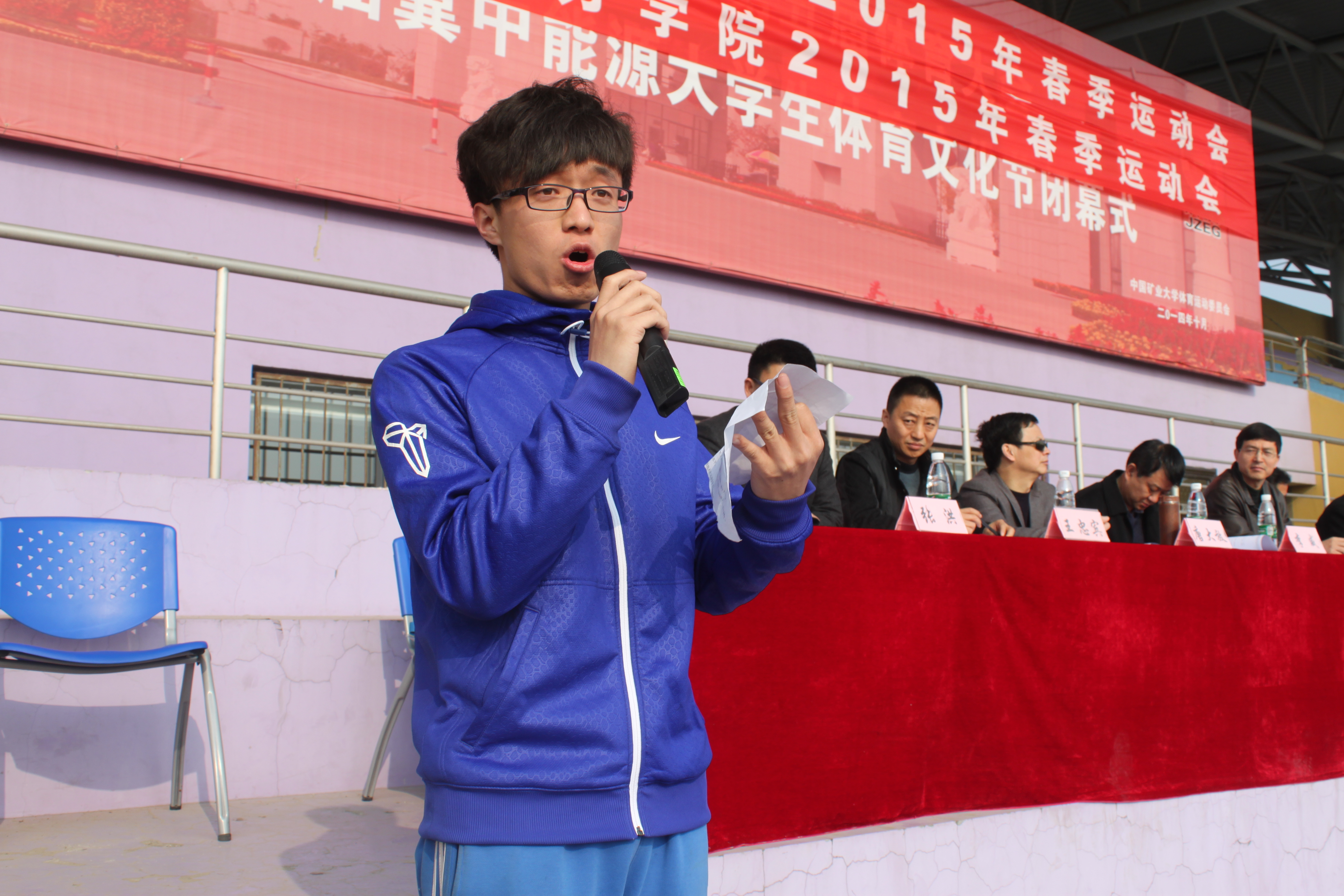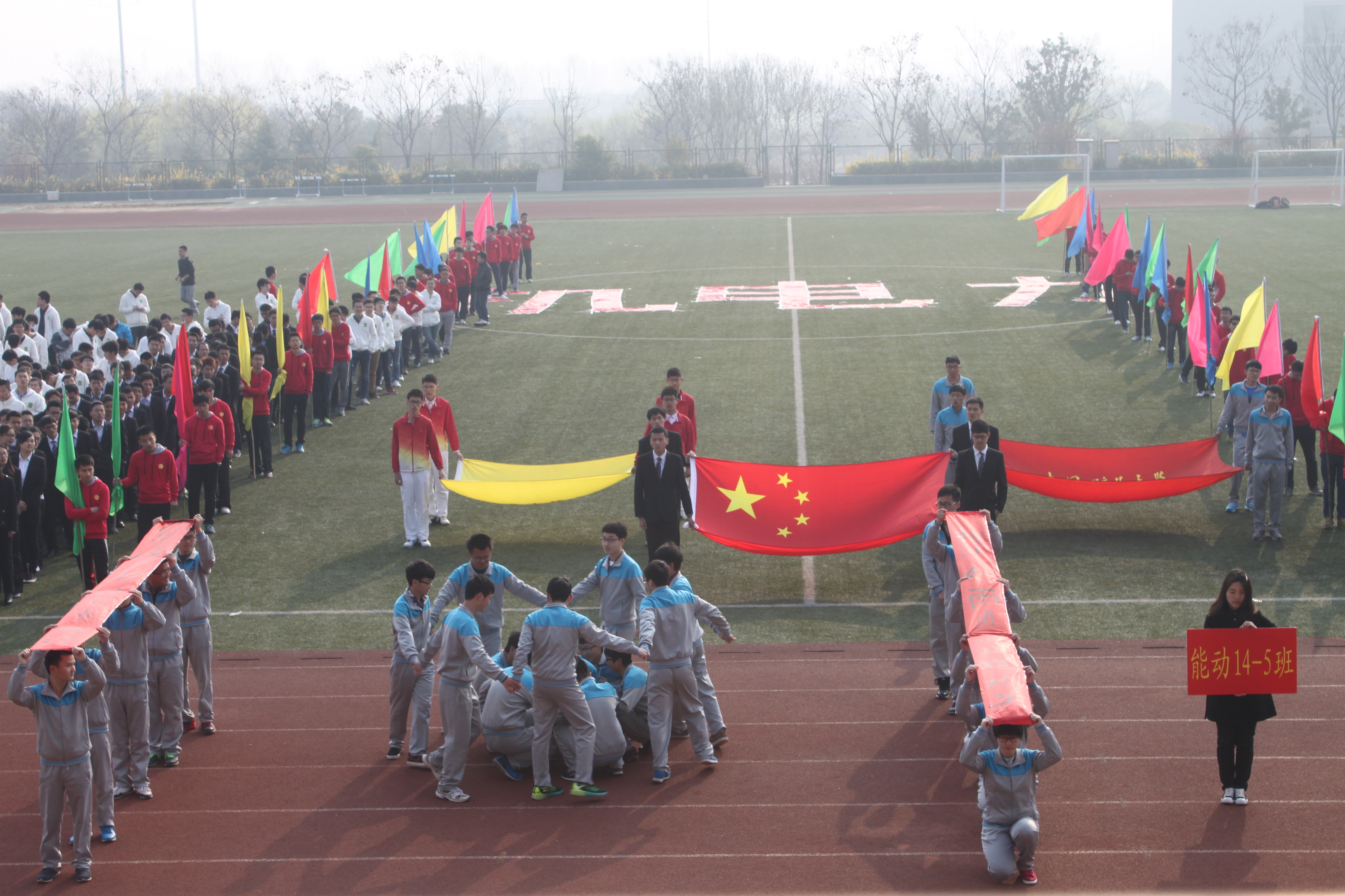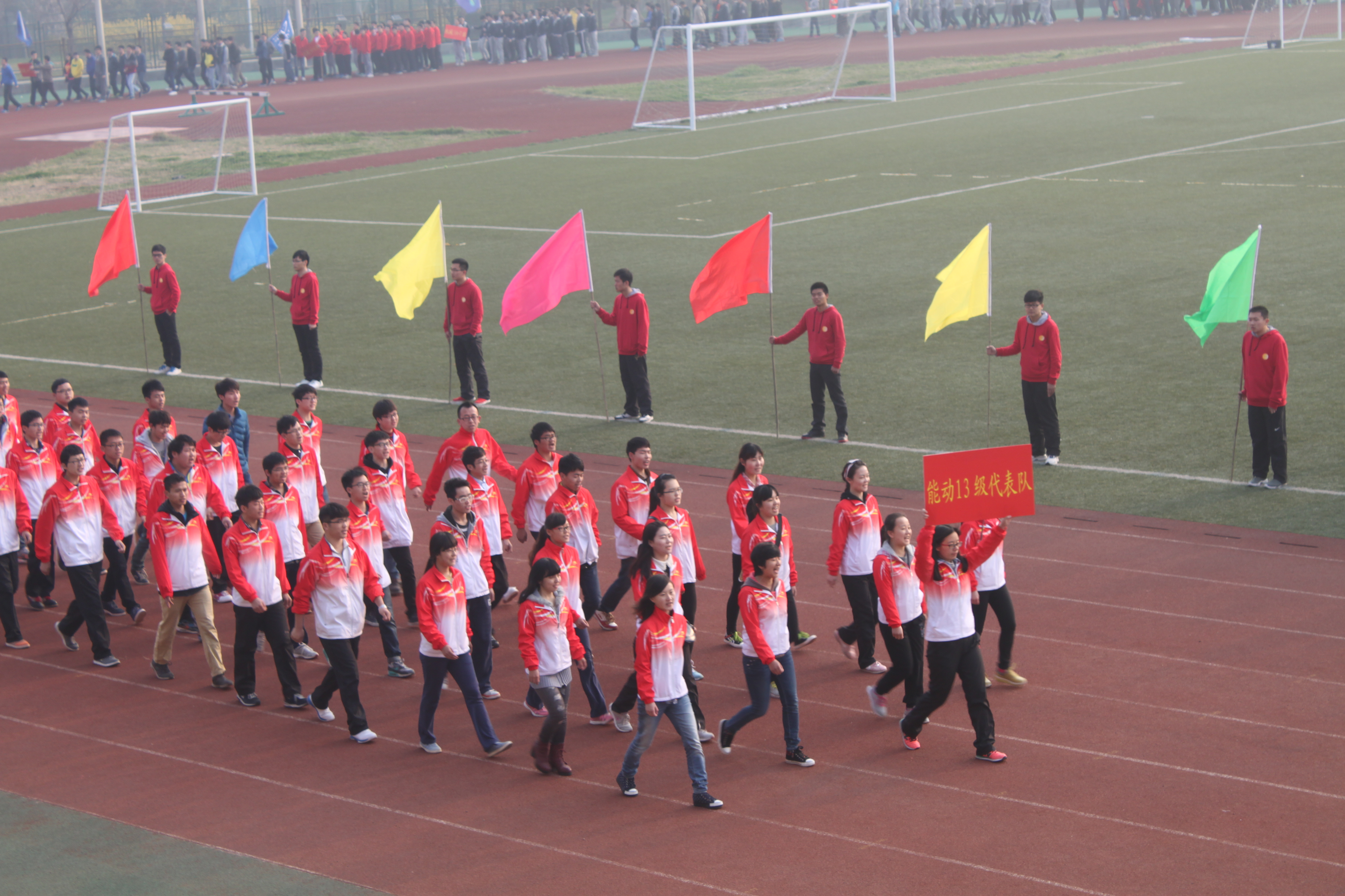 运动场上,当庄严的进行曲响起时,主持人一一介绍了出席开幕式的领导。伴随着慷慨激昂的《运动员进行曲》,由电力学院和机电学院各个班成员组成的方阵依次入场,运动会由此拉开序幕。各个班身穿院服或者班服整齐地行进着,每个方阵都雄赳赳,气昂昂,每个班各式各样的表演更是为观众带来一场视觉盛宴。其中,能动3班贴近能源专业,上演了一场小煤球与锅炉工人的故事。能动5班的同学手拉手摆成一朵盛开的花朵。能动6班的同学举着各国旗子表演着八国联军侵华时中国学生的反抗。现场观众们挥舞旗帜尽情呐喊,为学院加油,为运动员加油,现场热闹非凡。各班级代表团就位后举行了庄重的升旗仪式。开幕式上,学生裁判长代表全体裁判员宣誓,表示裁判员将严格执行竞赛规程与竞赛规则,团结协作,公平公正。运动员王浩楠代表全体运动员宣誓,表达了尊敬对手、尊重观众、服从裁判、勇于拼搏、赛出水平的决心与信心。院党委书记陈清华宣布2015年大学生春季运动会正式开幕。