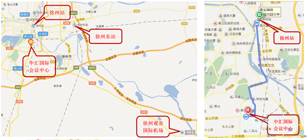 3.徐州观音国际机场:从机场乘坐机场大巴至中汇国际会议中心站下即到;出租车约100元。