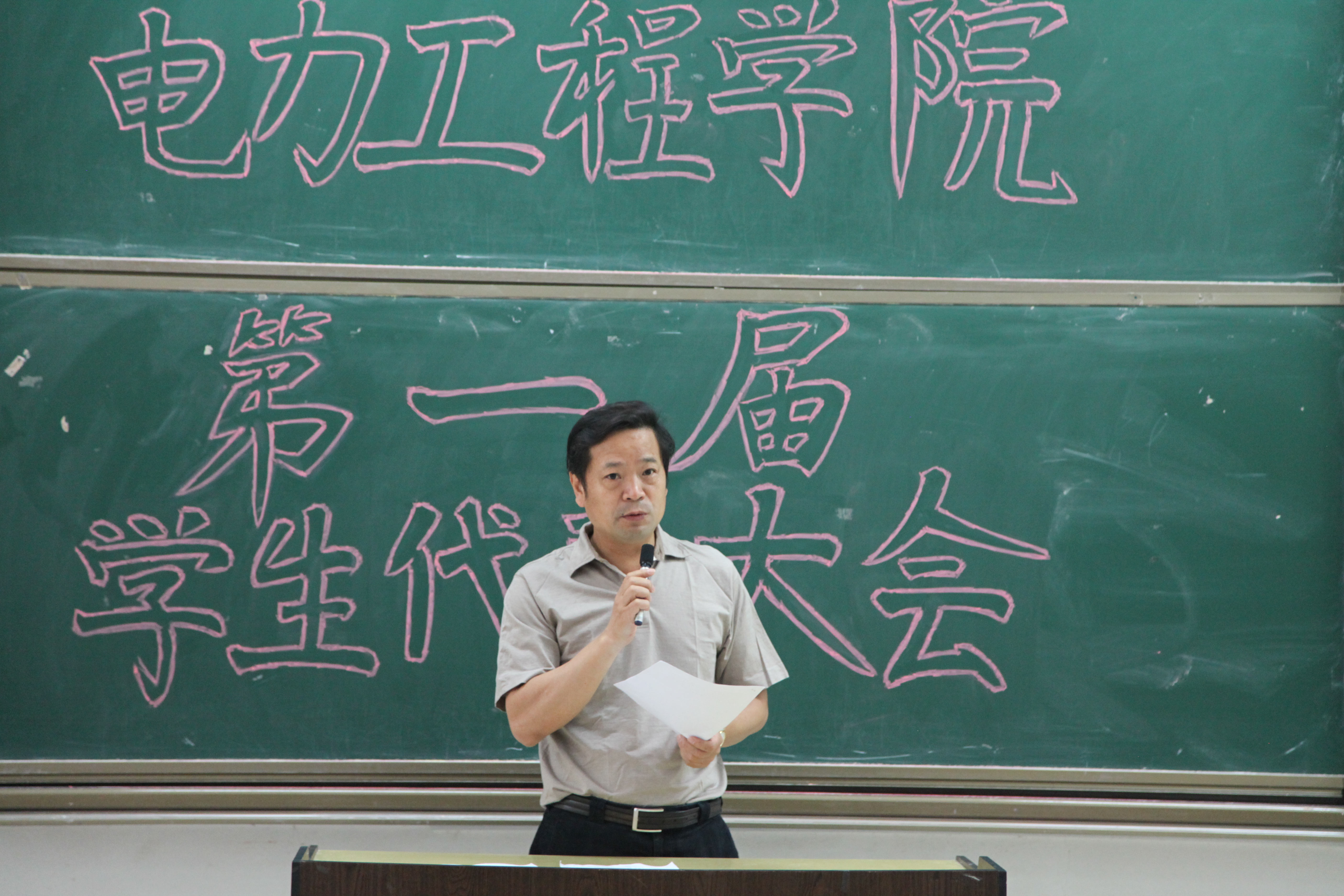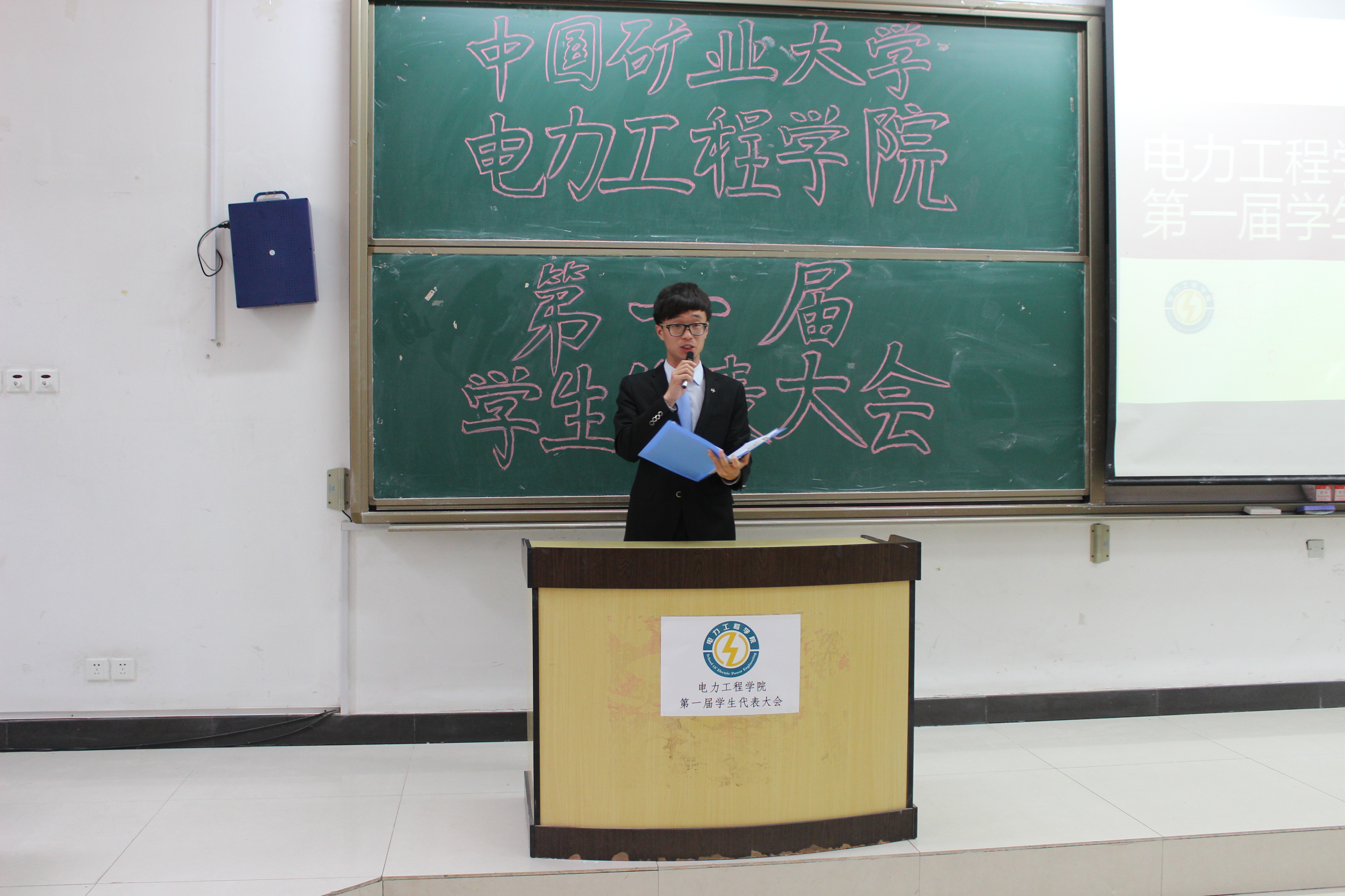 电力工程学院学生代表大会的倡议书,新一届主席王浩楠开始进行就职演说,一方面表达了对第四届电力团委学生会的赞扬与感谢,另一方面强调了学生会的职能,也对自己将来一年的计划作了承诺与保证,从内部建设、对外交流、科技创新等三方面陈述了自己对于第五届电力团委学生会的希望。最后,大会在庄严的国歌声中圆满结束。