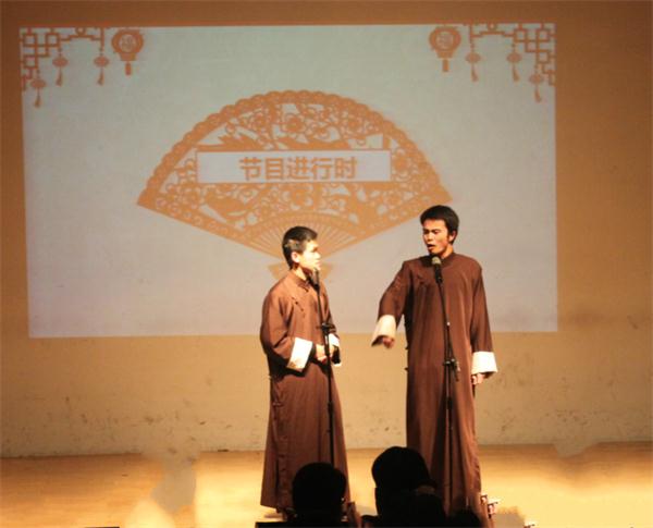圣诞节的脚步还未远去,大家又迎来喜气洋洋的2015年元旦。晚七点,在主持人声情并茂的开场白中,元旦晚会正式开始。在幕布上播放的开场视频中,校党委副书记曹德欣以及学院领导、老师向同学们致以节日问候和祝福。晚会期间,台下不时响起阵阵掌声,同学们情绪高涨。学院团委学生会各部门和社团奉献了一个个精彩的节目,节目形式丰富多彩,有舞蹈、歌曲、小品等。其中,激情四射的“光舞”瞬间引爆了全场——舞蹈演员穿着发光的衣服在隐去灯光的舞台上,利用衣服霓虹灯与身体的配合,使表演奇妙绚丽,让人震撼。青协独具特色的影子舞动作惟妙惟肖,语言风趣幽默,赢得了大家一致好评。爱乐天为观众带来了一首积极向上的歌曲《倔强》,动感的旋律提醒每个人遇到困难要学会坚强,不要轻易放弃。此外,其他学院和社团也为晚会献上了表演,古筝、琵琶、钢琴合奏的《森林狂想曲》让现场观众如痴如醉,机电学院带来的相声《满腹经纶》则博得满堂喝彩。最后,在一首悦耳的怀旧金曲《难忘今宵》中,晚会完美落幕。