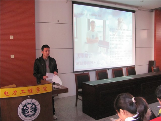 11月17日下午,2009-2010年度“校园之星”“明星集体”巡回报告会——第三站电力学院在材料楼A105顺利举办。厕拍 党总支副书记张磊,我校大学生心理健康教育中心范韶维老师及厕拍 辅导员孙婉、弓海军老师出席了报告会。电力学院10级全体新生参加了报告会。