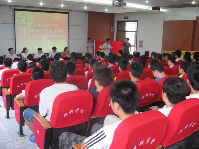 6月27日下午2点,电力学院在材料学院报告厅隆重举行了庆祝中国共产党成立八十九周年暨电力学院优秀学生党员表彰大会。出席大会的领导和老师有:电力学院党总支副书记张磊,团委书记田玉河,辅导员老师孙婉、张宇鑫、弓海军。大会由孙婉老师主持。