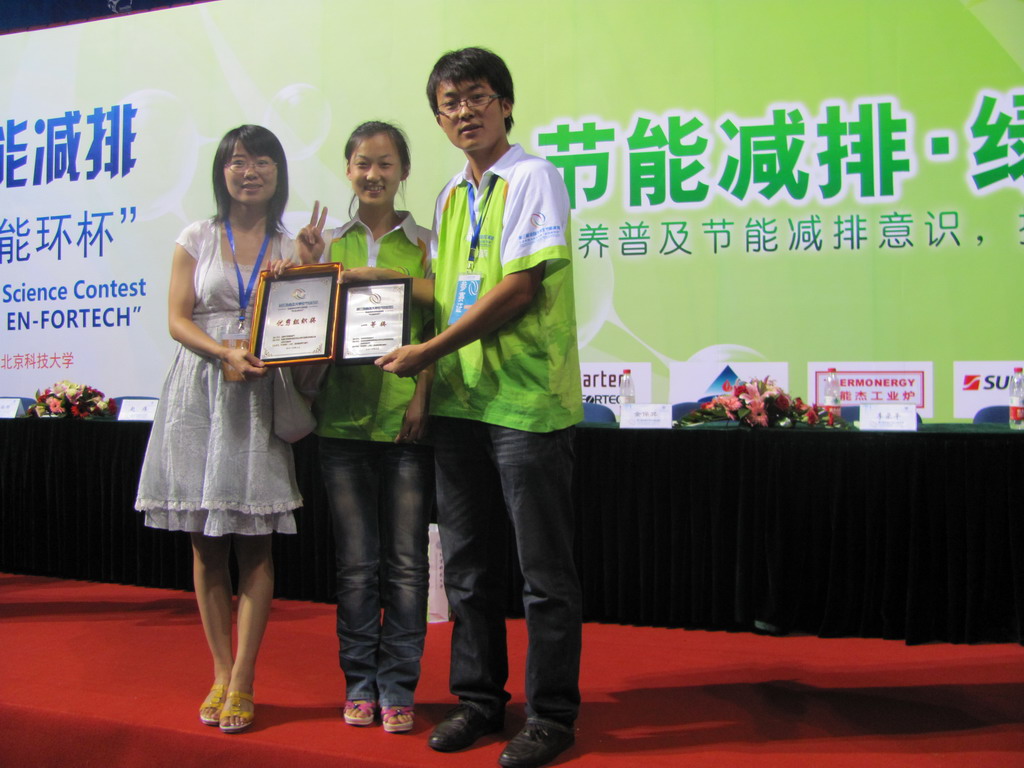 也获得优秀组织奖的荣誉,这是第三届全国大学生节能减排社会实践与科技竞赛中我校获得的唯一奖项。
