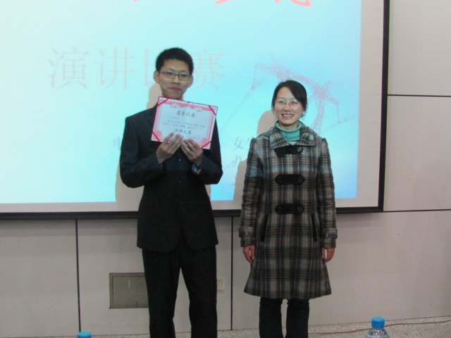 讲演结束后,各位评委各自就不同方面对选手的表现进行了点评,并提出了中肯的意见。最后评出了本次比赛的一、二、三等奖。王雨玮获一等奖;刘瑶、武文和高姗姗获二等奖;王道程、何磊、付姗富和王晨旭获三等奖。辅导员孙婉、弓海军老师和特邀嘉宾李晓林老师分别为获奖同学颁发了获奖证书。最后本次比赛在热烈的掌声中圆满落下帷幕。