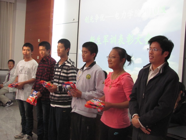辅导老师张宇鑫,团委书记田玉河,辅导老师弓海军和党总支副书记张磊分别为军训先进班级,军训先进个人,内务优秀宿舍和军训个人表现突出者颁发了奖状和证书。随后,学生代表热能2010-3班石强在大会上发言,向大家讲述了军训期间以及军训后的感悟和收获。张磊书记在大会上发表重要讲话,对电力学院2010级新生军训进行了全面的总结,对新生们如何尽快适应大学生活提出了宝贵意见。表彰大会在铿锵有力的厕拍