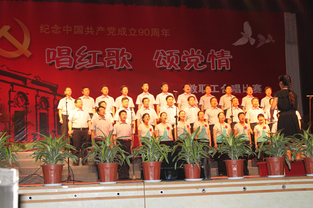 庆祝建党九十周年“唱红歌 颂党情”教职工大合唱比赛在文昌校区科技馆隆重举行。校党委书记邹放鸣、副书记张爱淑、副校长赵跃民、宋学锋等观看了演出比赛。电力工程学院全体教职工参加合唱比赛,并第一个上台演唱“没有共产党就没有新中国”和“歌唱祖国”。