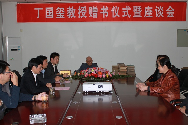 赠书仪式结束后,座谈会正式开始,李意民书记从学科的建设、学院老师的科研情况、学院发展与国家需求的联系、学院科研的规划等方面,向丁国玺教授汇报了学院的基本情况。丁国玺教授及各位老师就学院现况提出了自己的宝贵意见并进行了讨论。