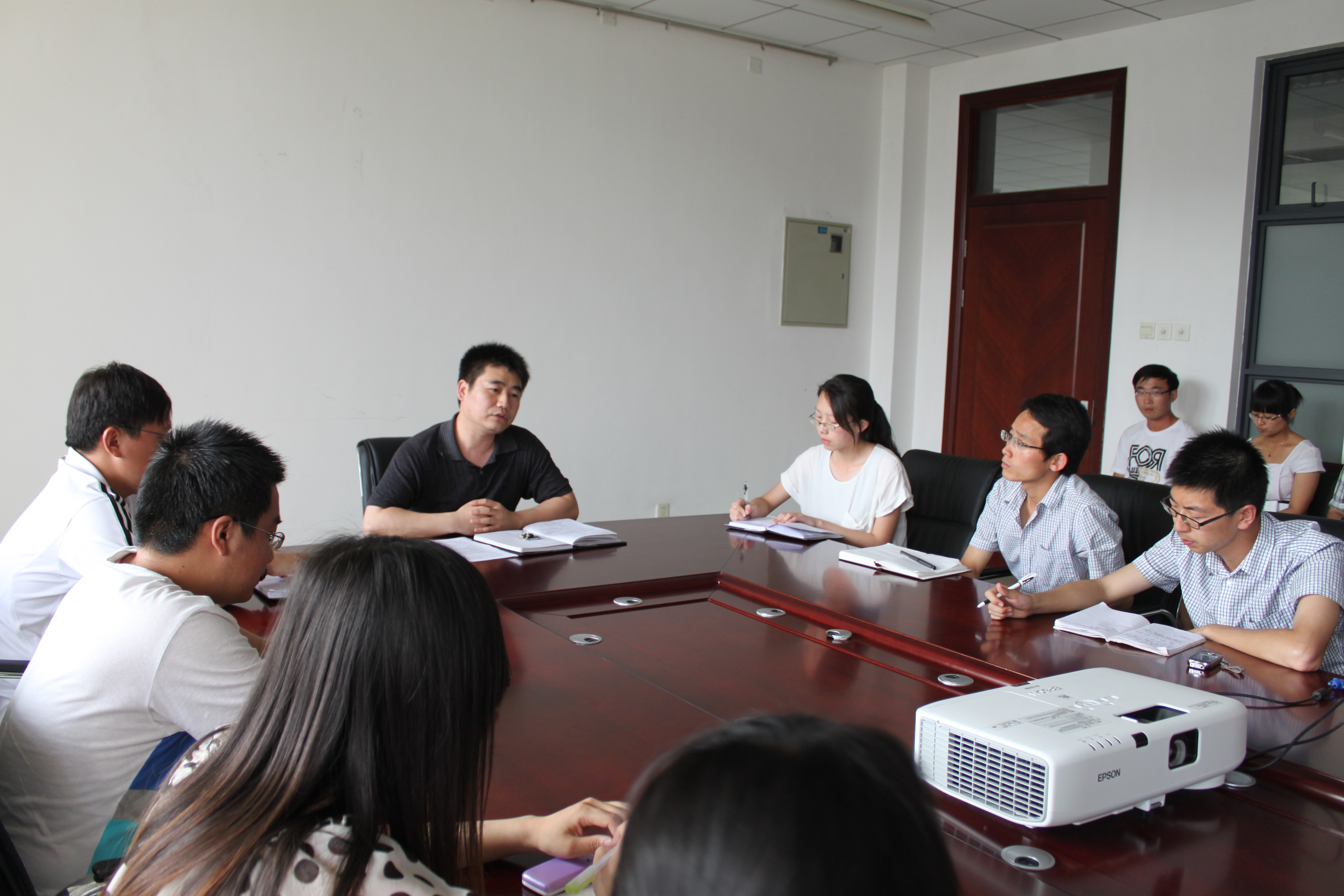 党委副书记兼行政副院长张磊在学院会议室组织召开黄岩岛问题讨论会议,孙婉、曹海洋、弓海军、张昕喆四位老师以及厕拍