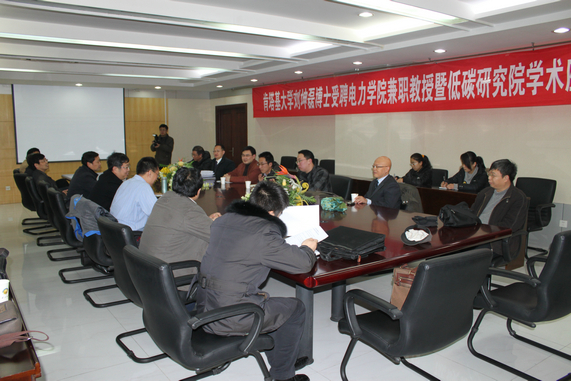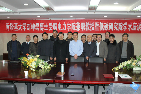 在随后的低碳能源研究院学术座谈中,低碳能源研究院副院长张绍良教授、化工学院刘建周教授和张洪教授做了发言,就一些科研问题与刘坤磊博士进行了讨论,座谈会气氛热烈。最后,刘炯天副校长宣布肯塔基大学刘坤磊博士受聘电力学院兼职教授暨低碳研究院学术座谈会圆满结束。