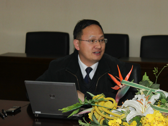 对刘坤磊博士的到来表示热烈欢迎,并对刘博士接受电力学院兼职教授表示感谢。随后他为刘博士颁发了聘书并发表讲话。他说刘博士的到来对于促进我校与美国科研机构在新能源项目方面的合作具有积极的意义,刘校长希望刘坤磊博士能够与我校教授在新能源技术的项目引进、技术创新和科研合作方面展开更广泛的合作,开创新的局面。同时,刘校长也邀请刘博士能够参与到我校更高水平师资队伍的建设中来,与矿大师生一起探讨学术问题。接着他和刘博士与在座教授们探讨了以高端研究带动本科生培养等相关问题。刘坤磊博士表示以后会努力工作,为矿大的建设以及对青年人才的培养做出应有的贡献。