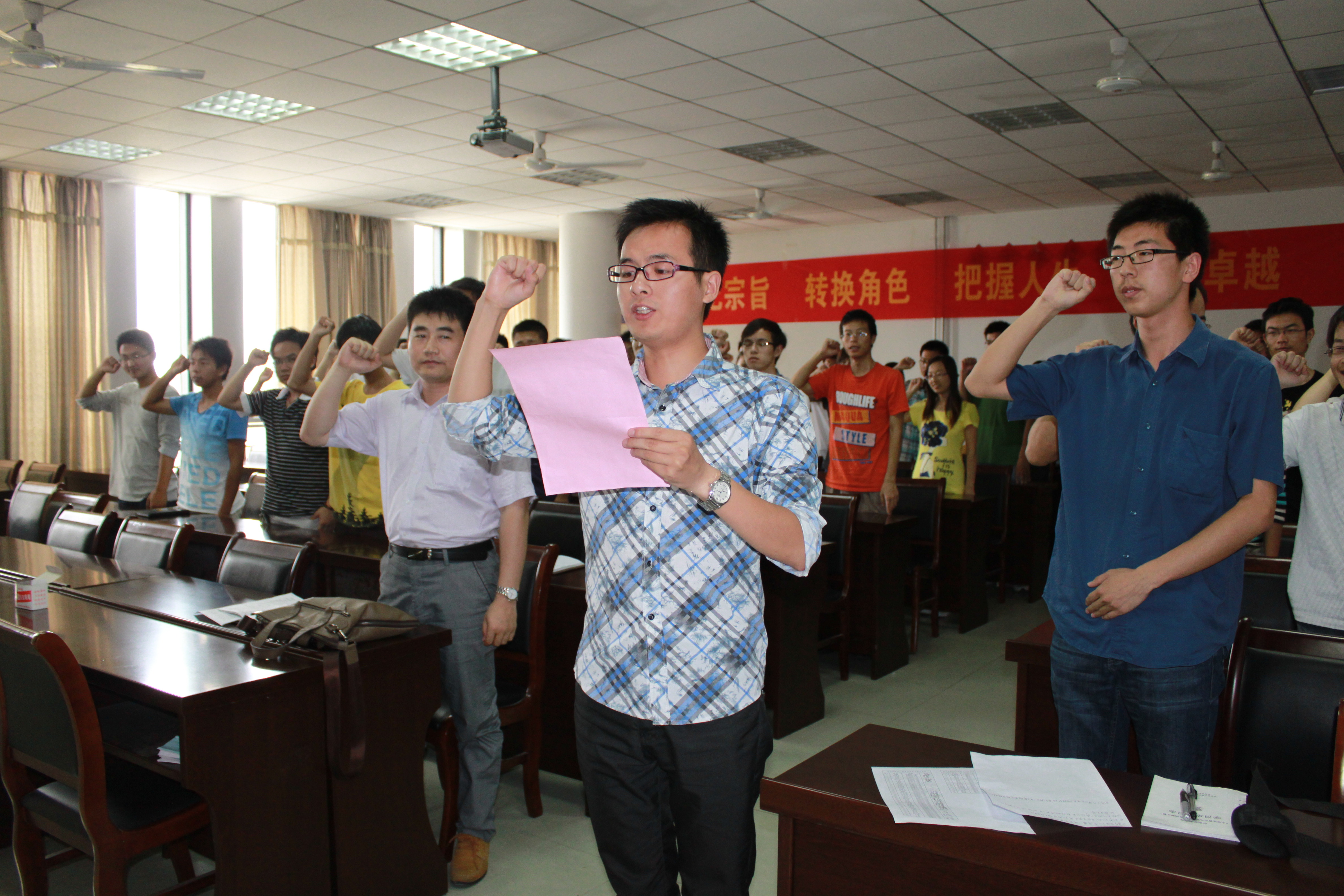 随后,党委书记陈清华通过三个方面对本次党课的主题进行了详细的解读和讲解。首先他指出同学们要在今后的学习、生活、工作等方方面面践行自己的入党誓词,树立正确的世界观、人生观、价值观;进一步从思想、品德、知识、行为方面加强党性修养;正确理解党的“全心全意为人民服务”的宗旨。接着,为同学们能够快速进行角色转换提出了以下建议:1、主动做好心理调整;2、增强角色意识,明确自己的责任;3、尽快改善自己的知识和能力结构;4、尽快崭露头角。最后,希望同学们常怀感恩之心,把握人生,追求卓越,并送党员们“坚定信念、有治有学、迎难而上、团结求实、行成于思”20字来勉励在场同学。