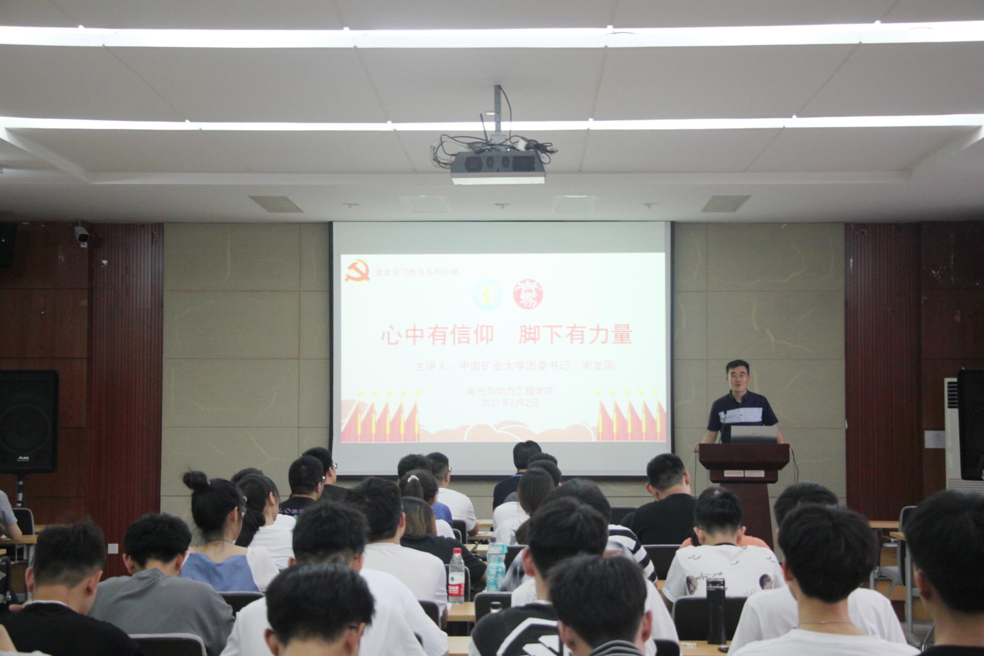 党史学习教育工作,进一步提高团学骨干和广大青年团员的思想道德修养和政策理论水平,帮助全体学员明确青年马克思主义者所要履行的责任义务,电力学院于6月2日晚在学院B518报告厅举行以“心中有信仰,脚下有力量”为主题的青马班第三场讲座。本次讲座邀请了厕拍