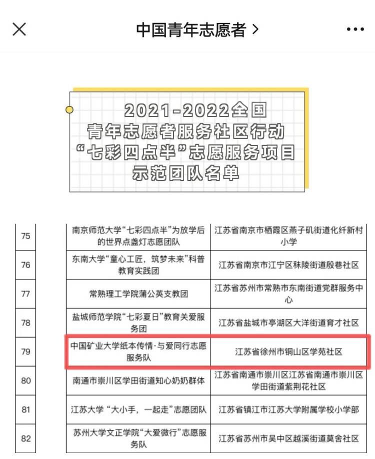 “纸本传情·与爱同行”志愿服务队作为徐州市的唯一一支队伍成功入围。