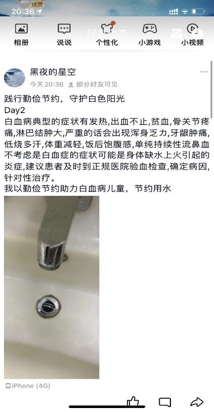 活动开始前,部门利用公众号小青对本次活动进行线上宣传,同学们踊跃参加活动。参与者报名成功后通过分享每日节能、理性消费的照片和贫困白血病儿童的故事宣传进行线上活动。通过这次的线上答题比赛,不仅培养了同学们勤俭节约,理性消费的良好习惯,而且以此呼吁更多的人关注白血病儿童这一弱势群体。为困境儿童捐款让孩子们得到了切实的帮助,也让同学们感受到了奉献爱心的喜悦与成就感。