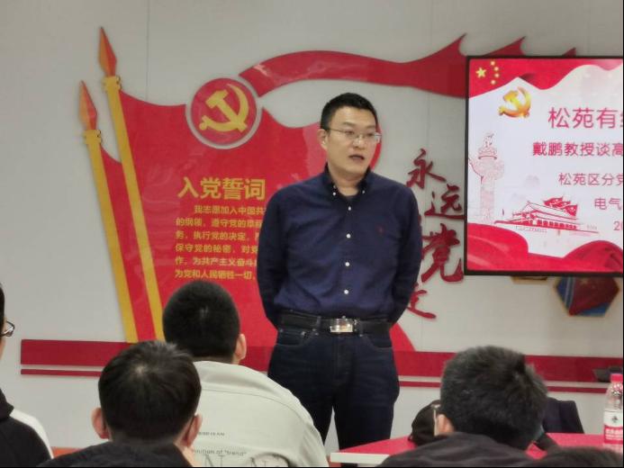 学生对高性能电力驱动控制技术的了解,提升同学们的专业素养,松苑分党工委电力学院工作组于11月4日下午举办了第十期“松苑有约之教授进公寓”沙龙活动。本次活动邀请了学院戴鹏教授主讲,电气专业部分本科生参加了本次沙龙活动。