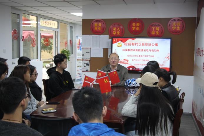 学生对新能源发电与电动车的了解,帮助同学们拓展对专业热门领域的认知,10月28日下午,松三党工委电力学院工作组举办第九期“松苑有约之教授进公寓”沙龙活动。本次活动邀请了学院陈昊教授主讲,电气专业部分本科生参加本次沙龙。