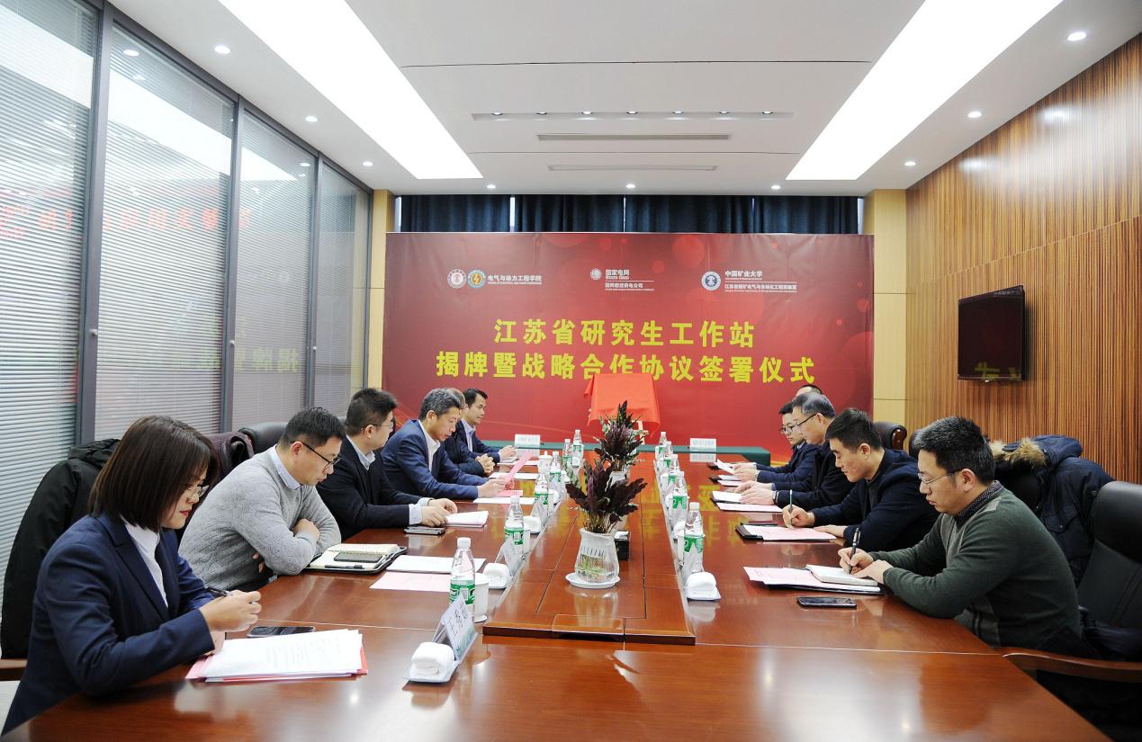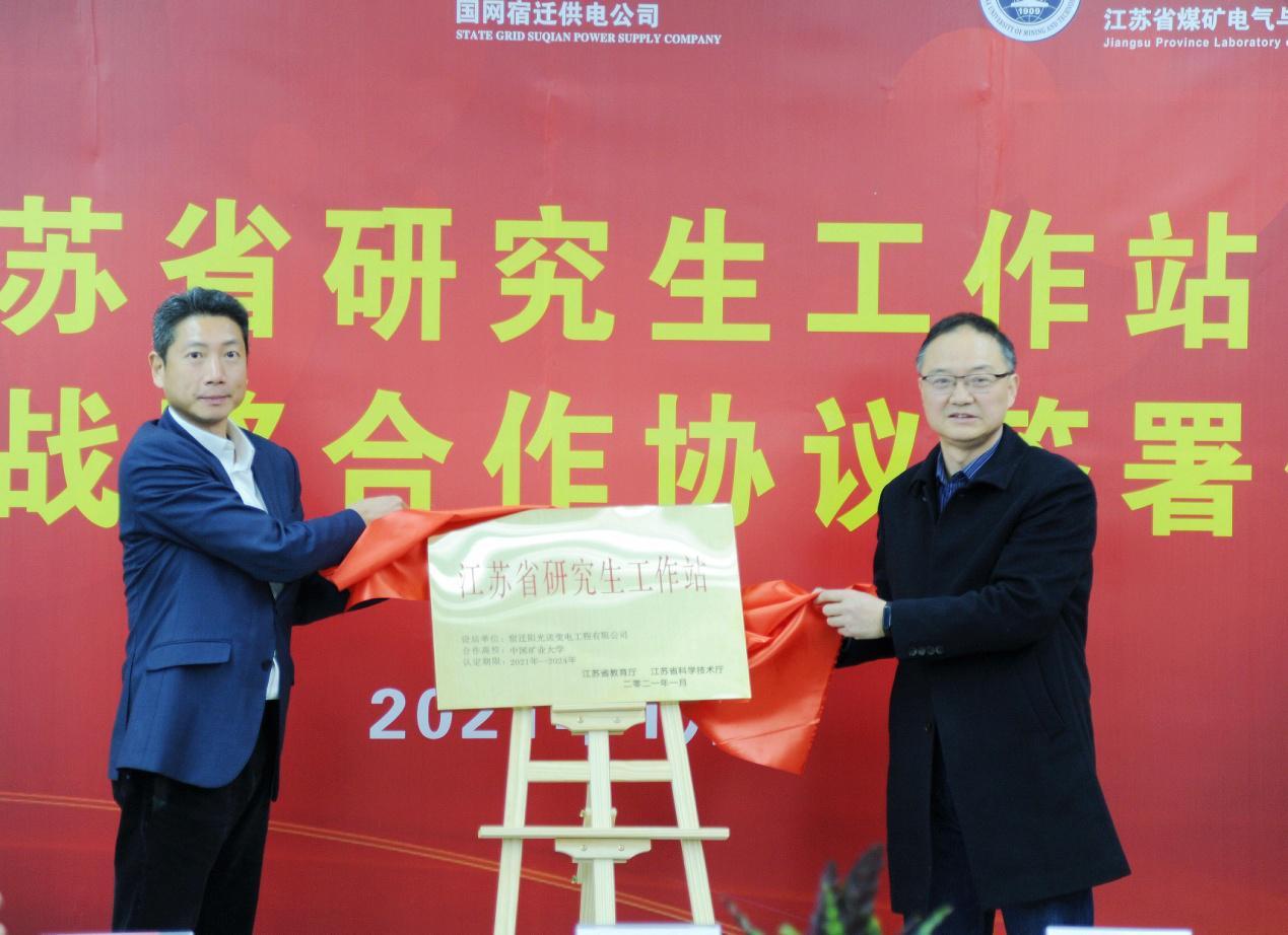 联合国网宿迁供电公司、江苏省煤矿电气与自动化工程实验室举行了江苏省研究生工作站揭牌暨战略合作协议签署仪式。学院党委书记伍小杰、党委副书记于基伯、副院长饶中浩、教授梁睿、副教授刘昊、公司总经理刘纲、党委书记张小涛、副总经理代鹏等出席本次仪式。