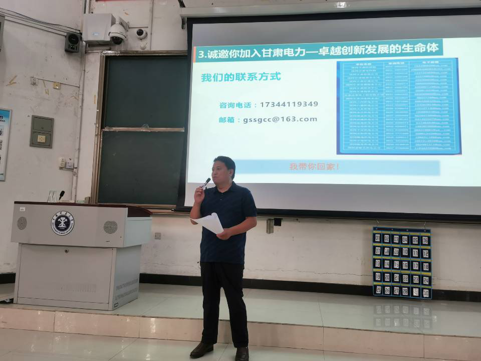 邹老师就国网考试与招聘政策两方面,为大家介绍了2021年国网甘肃省电力公司招聘政策,并强调了校园招聘对高校毕业生就业的重要性。他结合“大美甘肃”的主题,声情并茂地展示了甘肃省的历史文化风貌,并表示热烈欢迎同学们参加甘肃省电力公司的校园招聘。随后,顾老师就自己多年校园招聘经验,对同学们提出了关于就业选择的诚恳建议,并解答了现场同学的问题。会后,部分同学与二位负责老师积极踊跃交流,纷纷表示获益良多。