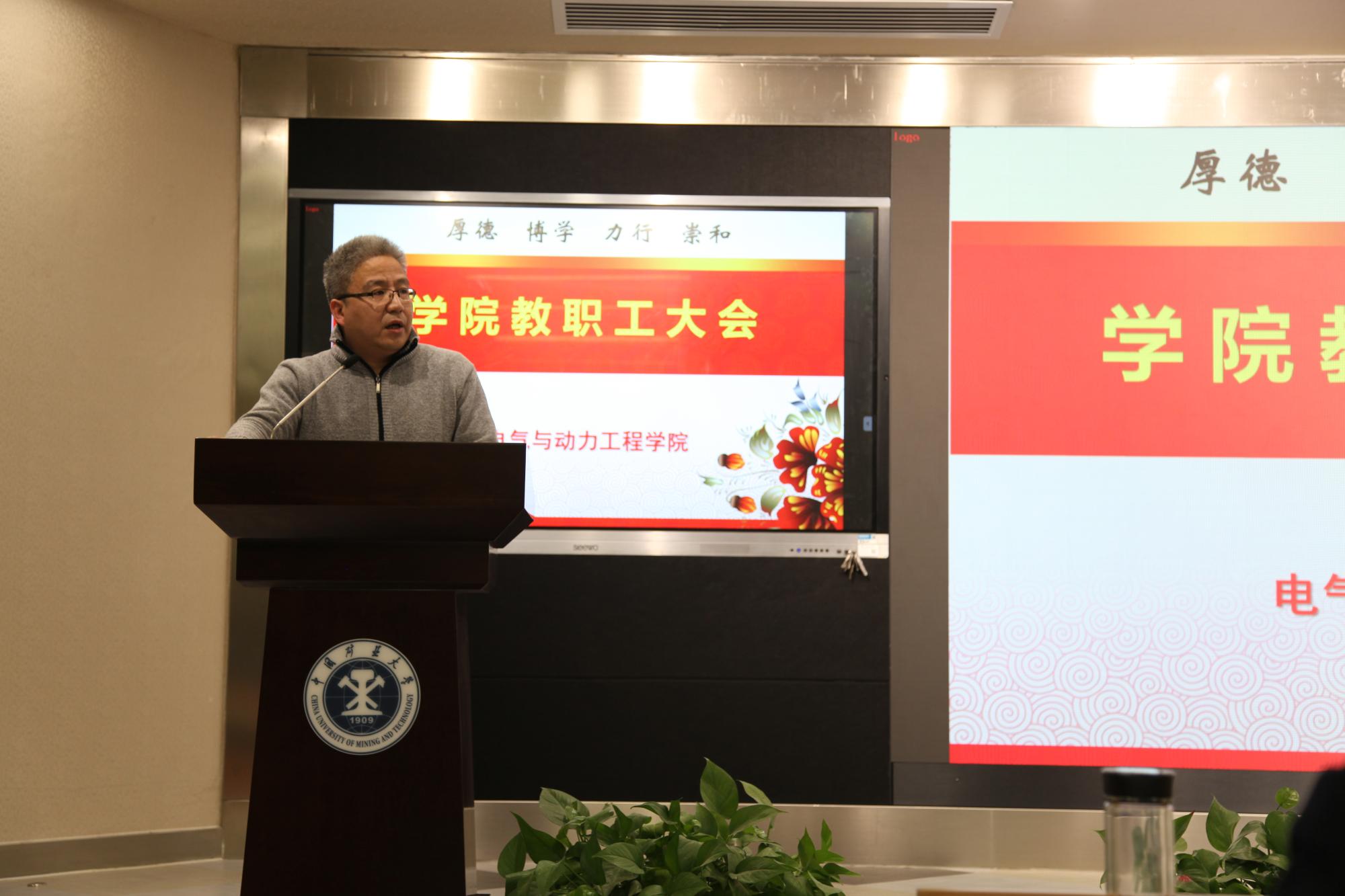 为全面总结本学期教职工工作,加强学院工作建设,1月10日,电力学院于博五A407召开全院教职工大会暨中层干部群众测评大会,院党委书记伍小杰、院党委副书记许宏志、院长郭楚文、教学副院长徐瑞东、科研、研究生副院长韩东太和行政副院长江国出席本次会议并汇报工作。会议由院党委书记伍小杰主持,全院教职工和学生代表参加。