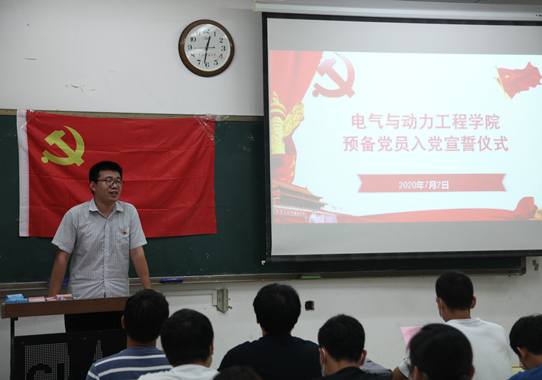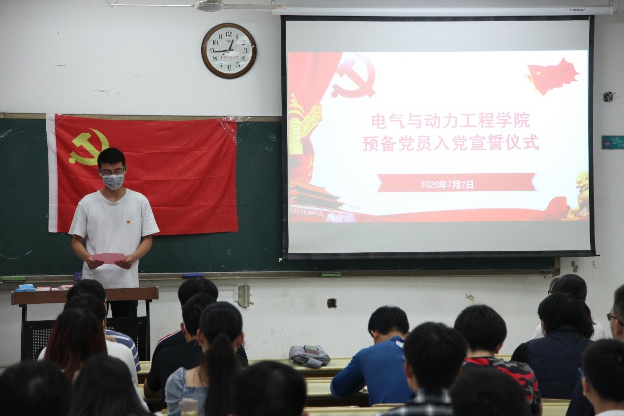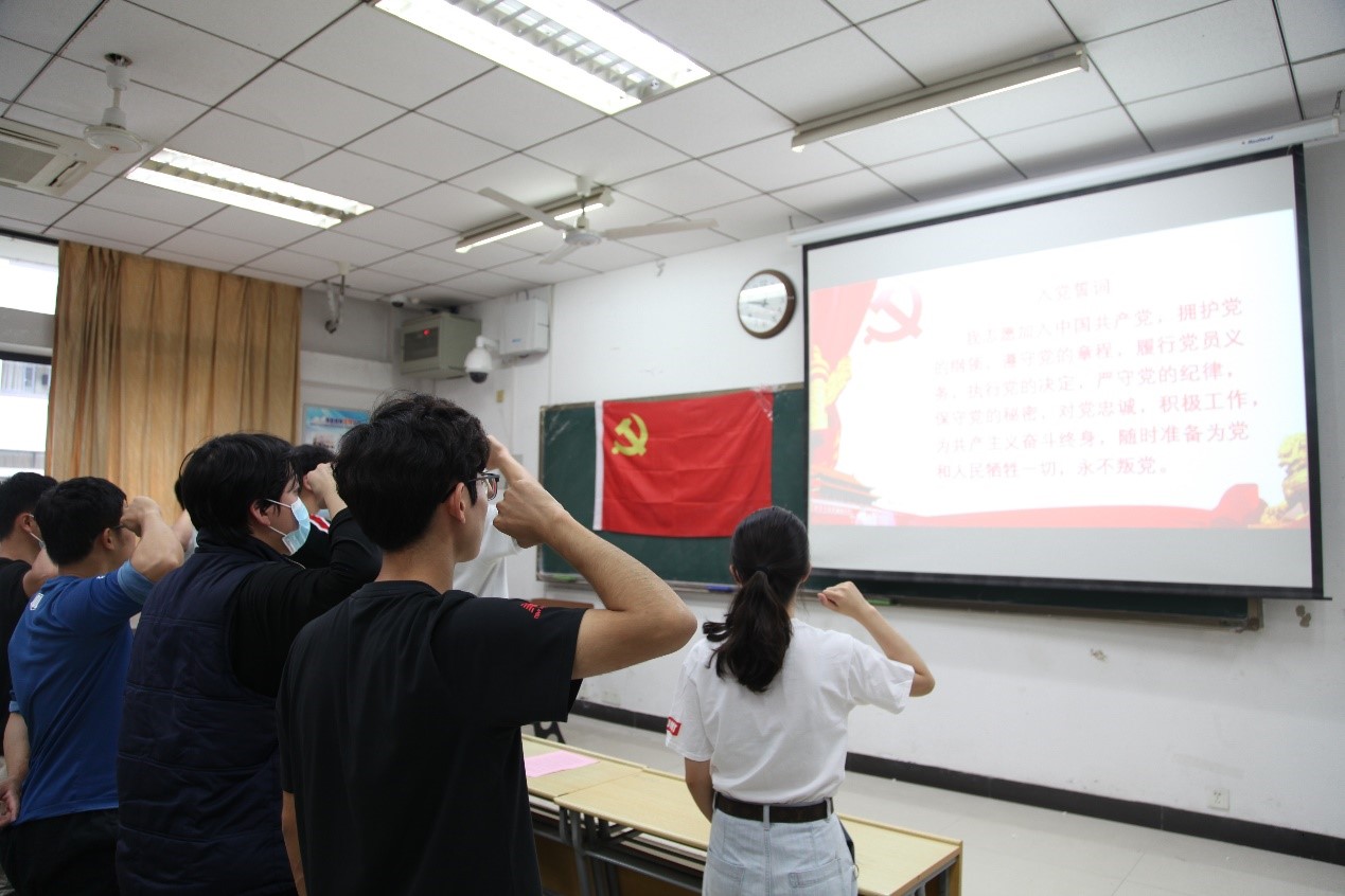预备党员入党宣誓仪式在博学楼四号楼B102教室举行。学院辅导员郭凯强老师、2020年上半年新发展的学生党员和老党员代表参加了本次入党宣誓仪式。