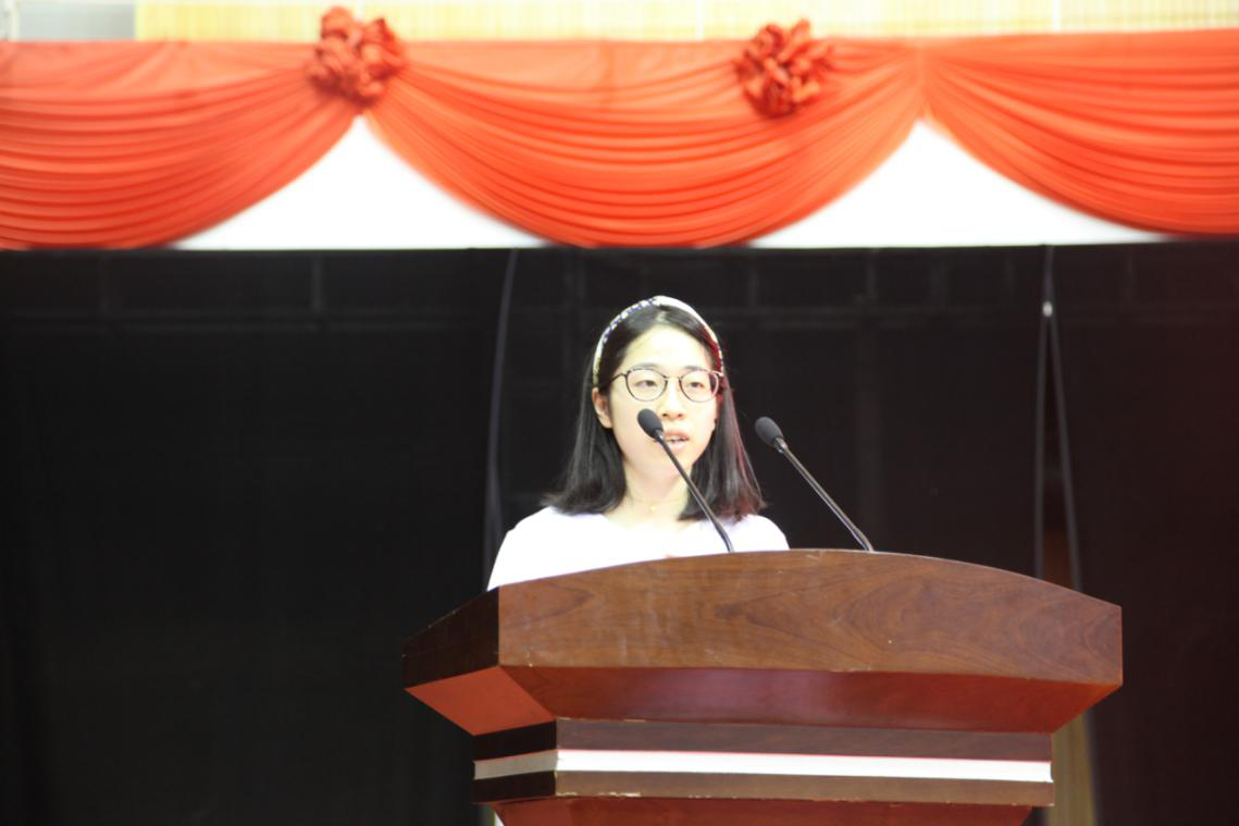 随后,来自本科2017级电气2班的肖婷婷作为老生代表上台发言。她首先对学院全体领导以及老师表达了感谢,结合自己的亲身经历向新生们讲述了自己的学习经验和方法,并为他们的大学生活送上了美好祝福。随后,2019级流体力学博士研究生吕培召作为优秀研究生代表发言。他结合自身科研成长寄语新生,在大学里只有快速适应变化才能有所作为,希望学弟学妹们能够度过一个充实无悔的大学生涯。最后,来自本科2020级电气4班的刘璟同学代表新生发言,她讲述了自己对学校和专业的初感受,表达了对大学生活的憧憬和期待,代表全体新生表示了为学院争光添彩的决心,希望在学校和学院的培养下努力成才,为祖国伟大复兴事业献上自己的一份力量。