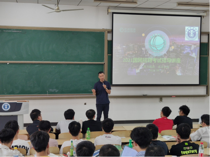 于博4楼B201教室举办2021年国家电网招聘考试指导讲座。本次讲座邀请了国家电网特聘讲师、智联招聘金牌面试官山老师主讲。学院电气专业大二、大三学生参加讲座。